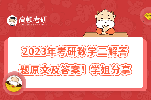 2023考研初试终于落下了帷幕,想必不少小伙伴都在焦急地等待考研试题吧!为了帮助大家更好地了解23考研的详细情况,学姐整理出了2023年考研数学三解答...