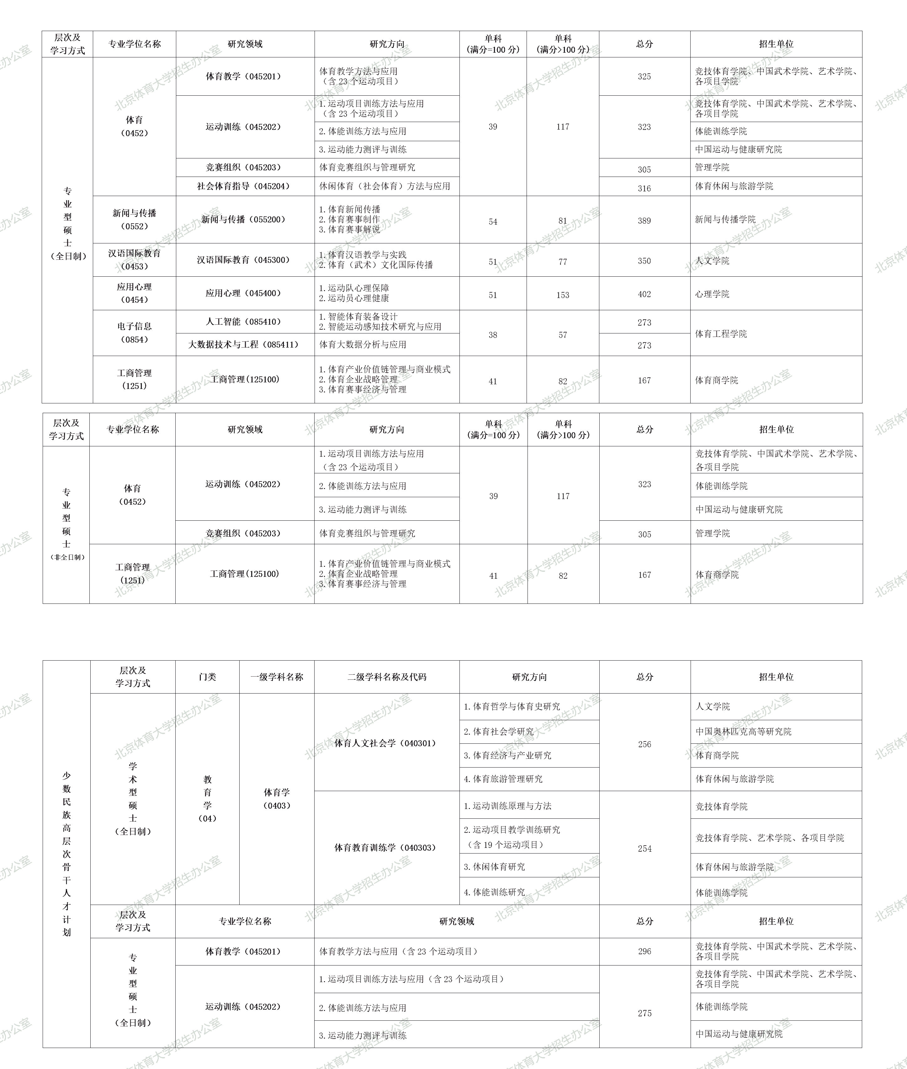 2023年北京体育大学考研复试分数线一览!附2022分数线