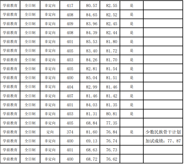 表格内容依次为专业、学习方式、学习类别、初试成绩、复试成绩、总成绩、是否拟录取、备注