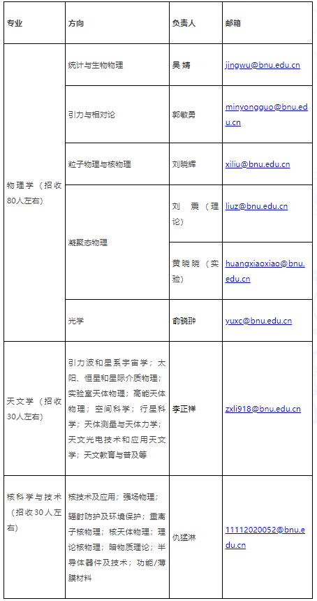 学院导师及研究方向详细信息见https://physics.bnu.edu.cn/szdw/wlx/jxky/llwl/index.htm