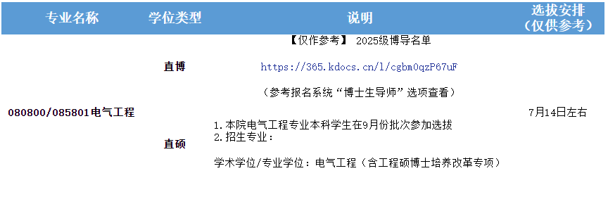 3)直硕填报专业说明:直硕报名时按基层单位申请,考核完成后根据《上海交通大学电气工程学院2026年优秀生源选拔复试方案》确定录取结果。如有特殊情况请在备注栏说明。