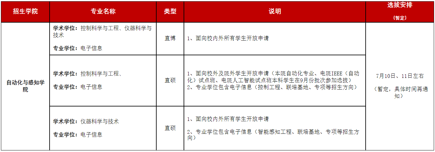 2026级自动化与感知学院研究生“优秀生源”选拔活动面向校内外学生选拔,含联培基地注1、工程硕博士培养改革专项注2,具体以当年招生政策为准。2026年硕士招生专业可参考https://yzb.sjtu.edu.cn/post/3176。