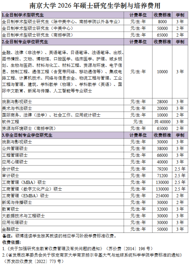 南大发布2026年硕士研究生学制与培养费用,涵盖全日制学术型、全日制专业学位及非全日制专业学位研究生。高顿小编整理出南大各专业收费标准与学制信...