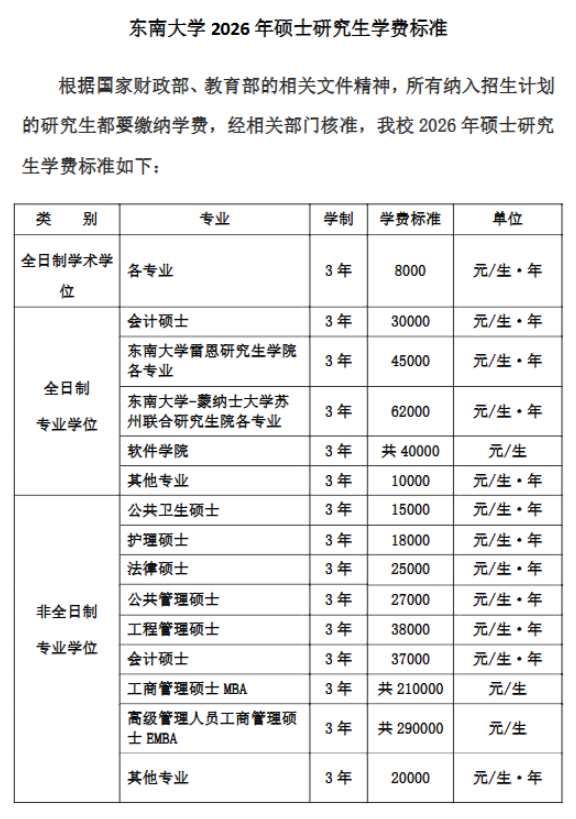 东南大学发布2026年硕士研究生学制与学费标准,涵盖全日制学术学位、全日制专业学位及非全日制专业学位的专业。高顿小编为助考生了解相关信息,整理...