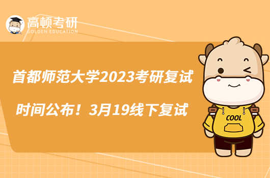 首都师范大学2023考研复试时间正式公布啦,一志愿上线考生复试时间为2023年3月19日至3月26日,采取线下方式进行(考生须到我校参加笔试和面试) ,报考...